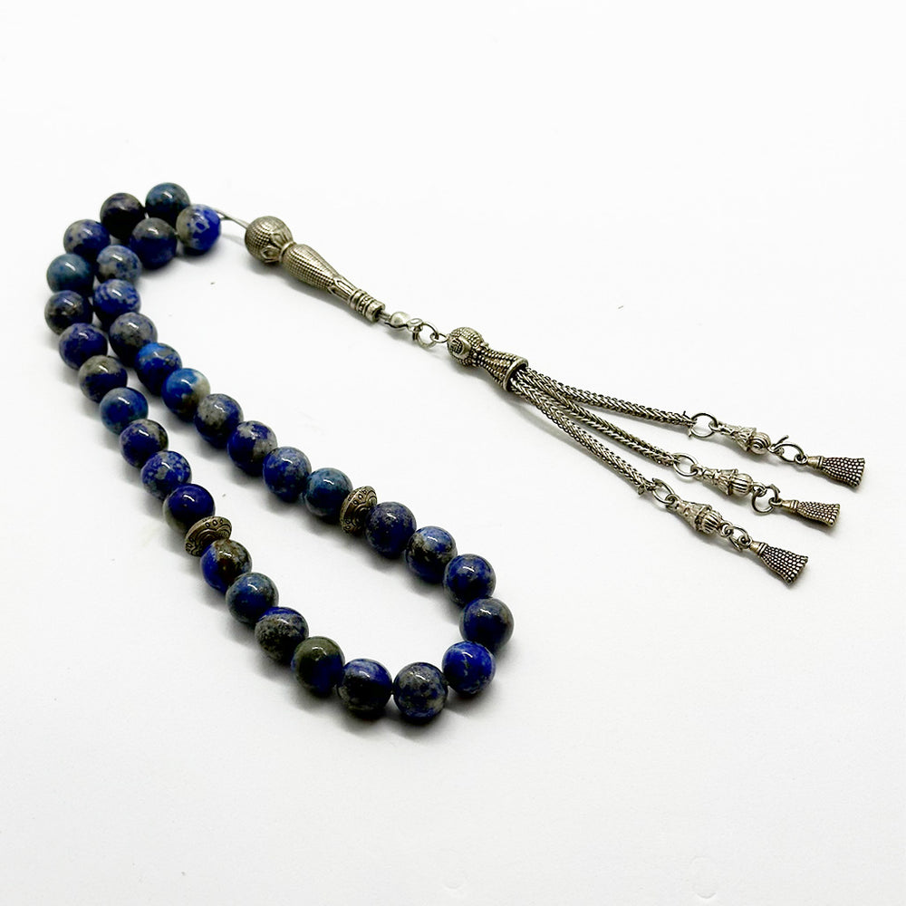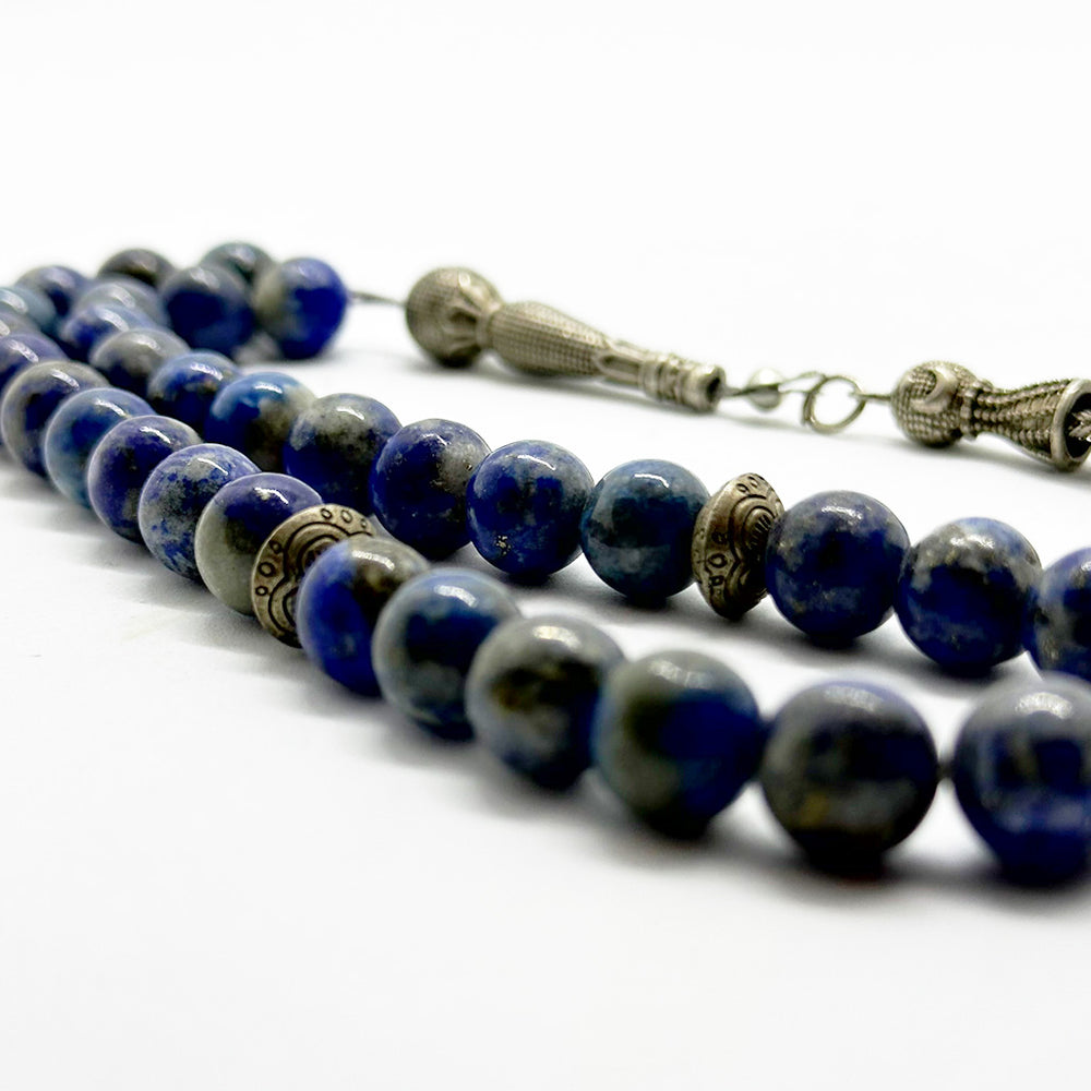 سبحة مصنوعة من حجر اللابيس لازورد الطبيعي، مكوّنة من 33 حبّة بمقاس 10 مم. مناسبة للاستخدام اليومي في الذكر والتسبيح، مع وزن متوازن وملمس ناعم في اليد. يتميز الحجر بلونه الطبيعي، وقد تختلف درجات اللون أو النقوش البسيطة بين القطع.