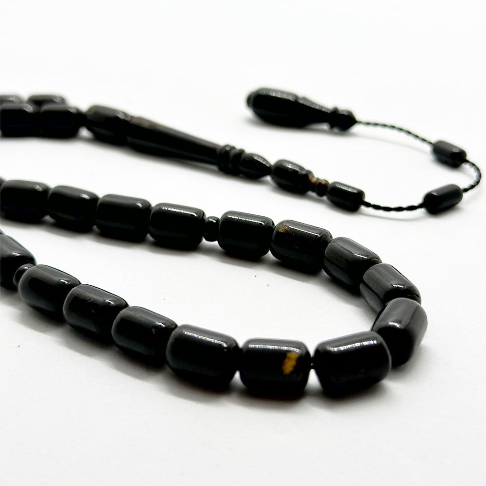 سبحة مصنوعة من حجر اليسر الطبيعي (مرجان أسود) بتصميم برميلي، مكوّنة من 33 حبّة بمقاس 6 مم. مناسبة للاستخدام اليومي في الذكر، مع خفة وزن وملمس ناعم يسهل الحركة بين الحبات. قد تختلف التعاريق الطبيعية البسيطة بين القطع.