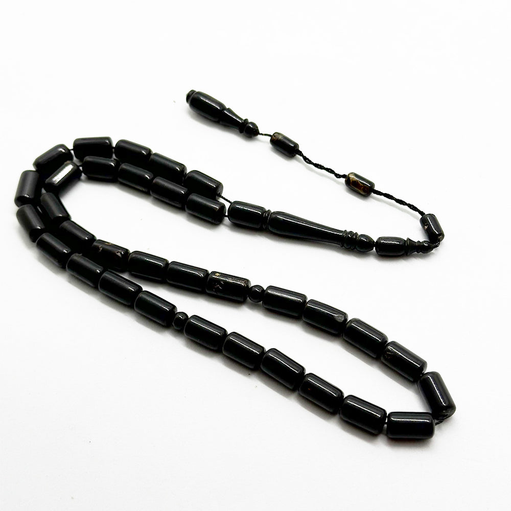 سبحة مصنوعة من حجر اليسر الطبيعي (مرجان أسود) بتصميم برميلي، مكوّنة من 33 حبّة بمقاس 7 مم. مناسبة للاستخدام اليومي في الذكر والتسبيح، مع وزن متوازن وملمس مريح في اليد. قد تختلف تفاصيل اللون الطبيعية البسيطة حسب الحجر.